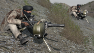 Returning from Armed Assault, the ArmA 2 AGS-30 continues to serve as a simple static AGL mounted onto a low tripod.