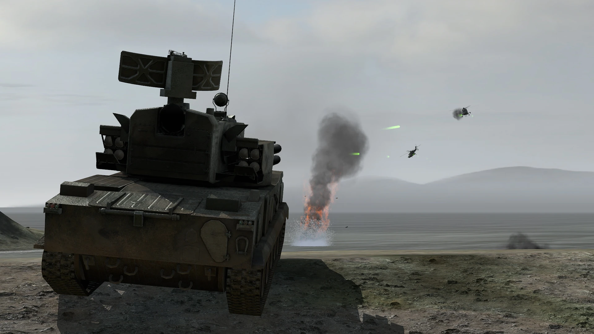 Due to only being a light gunship at best, the Wildcat is soft-skinned and remains vulnerable to autocannon-armed anti-air vehicles that will easily shred the helicopter should it get close enough to their guns. Prolonged contact against AA infantry, particularly those wielding modern surface-to-air missiles, should be avoided unless it is absolutely necessary since the Wildcat will not last long even with its defensive countermeasures suite.