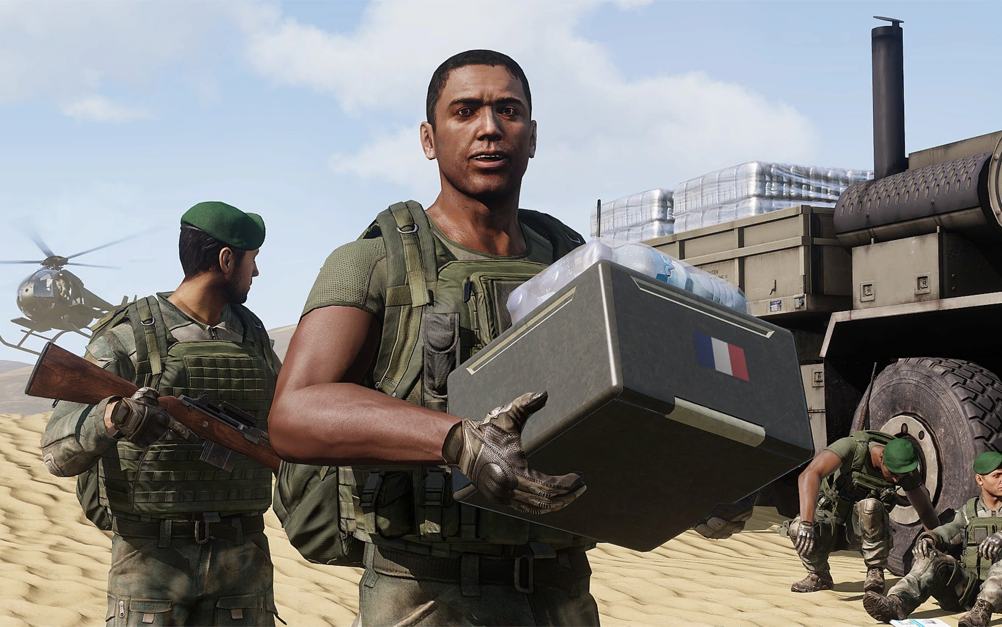 ↑ARMA 3:Apex 2016 [Video Game], Bohemia Interactive a.s., Old Man, \a3\missions_f_oldman\data\img\intro\legio\om_intro05_newspaper_clean_ca.paa, "French Foreign Legion delivers aid to Argana", News Today