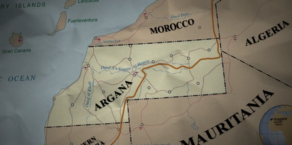Located in the Maghreb region of North Africa, Argana is situated within the northern half of the Western Sahara. It neighbors Morocco, Algeria, Mauritania and the south of Western Sahara, status unknown.[12]