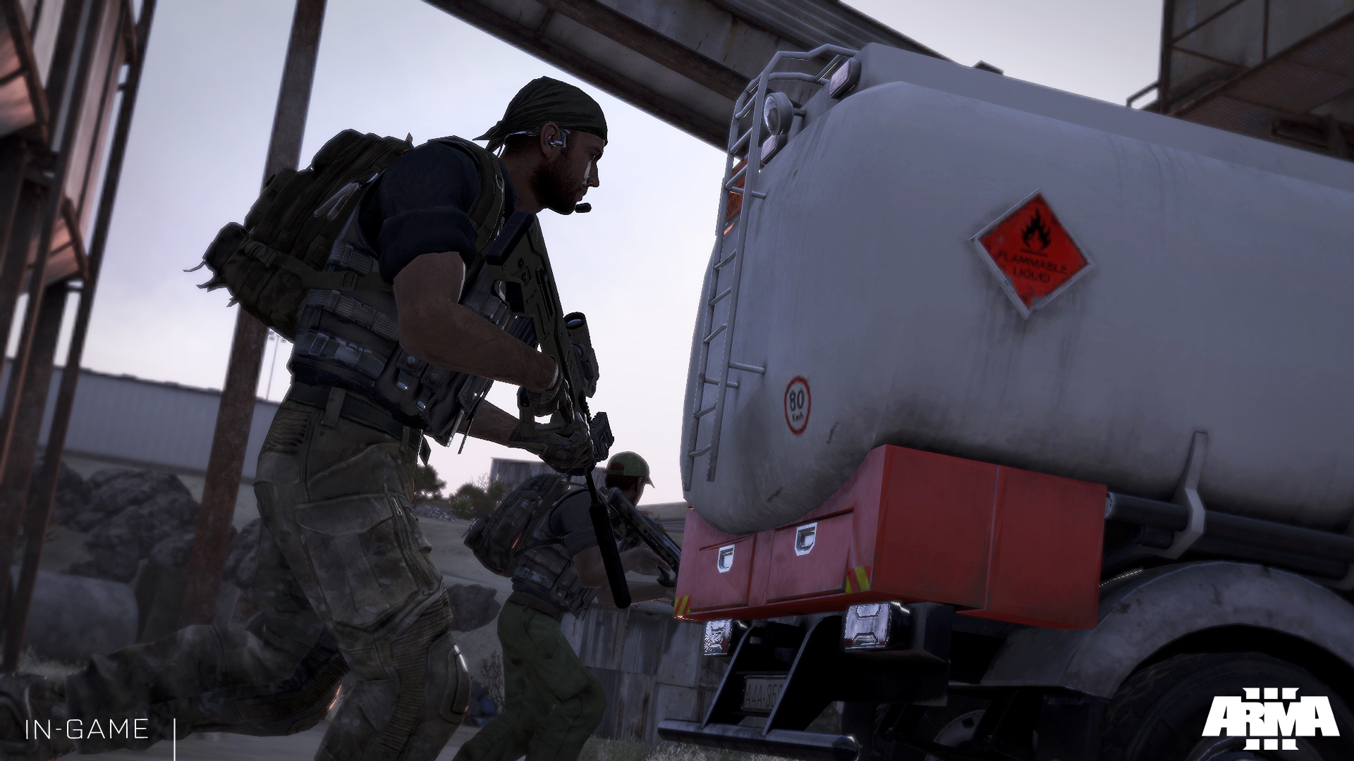 Under the cover of darkness, Kerry's men, Sigma, and Gamma carefully made their way across the main highway and bypassed numerous patrols until they got within visual range of the complex.[169] The defending guards were quietly dispatched, and Kerry ran towards where the fuel trucks were parked. However, upon getting into the truck he quickly realised that the vehicle itself was not only drained of fuel but that the cisterns they were carrying were empty as well.[170]