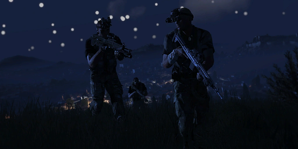 Suddenly, he begins to notice the silhouettes of several boats approaching the coastline in the south. He quickly reports his sighting back to his fireteam leader who then tells Kerry to regroup with him at the team's patrol vehicle.[191] Elsewhere, COL Armstrong relayed a message to all frontline units that large amounts of activity were being reported at the airport.[192]