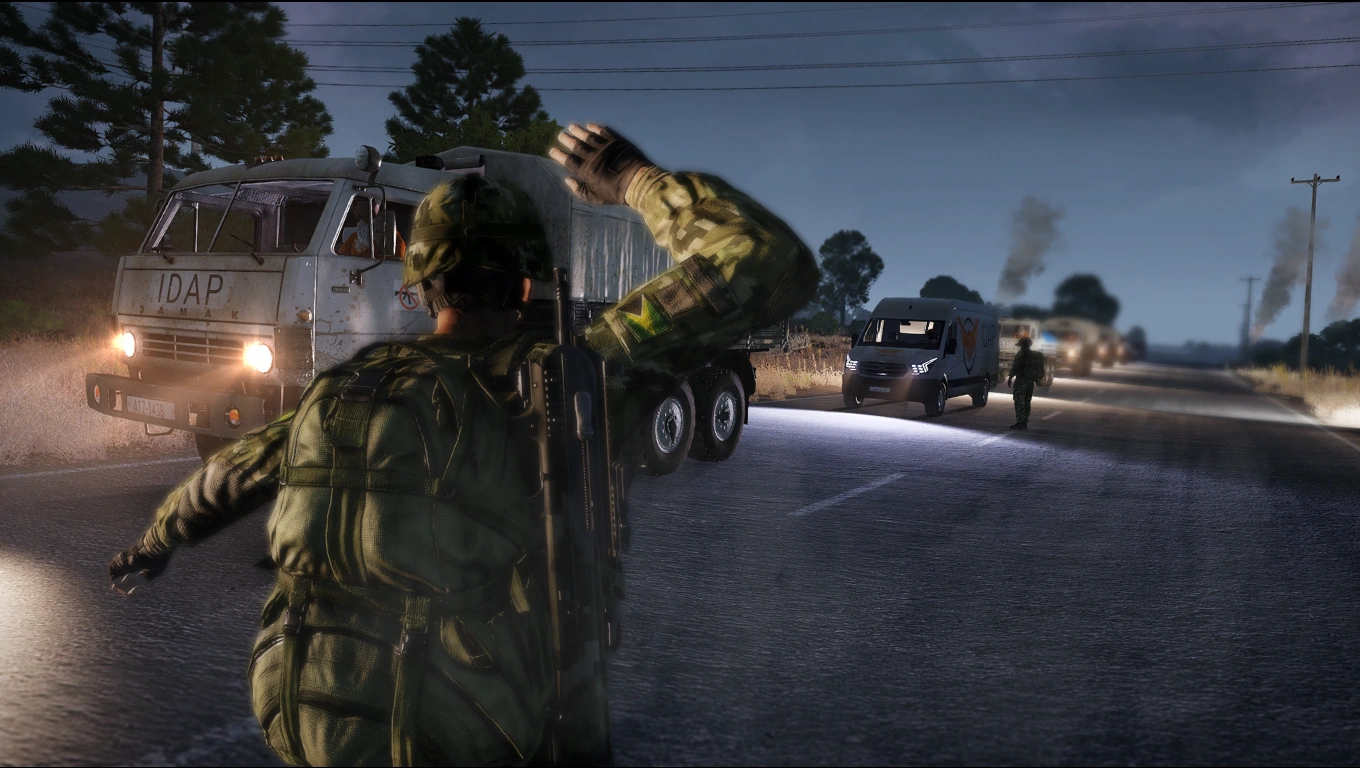 Hours later, they discover the AAF's allies deliberately withholding an IDAP aid convoy from getting through to the town of Abdera at one of their checkpoints in Galati.