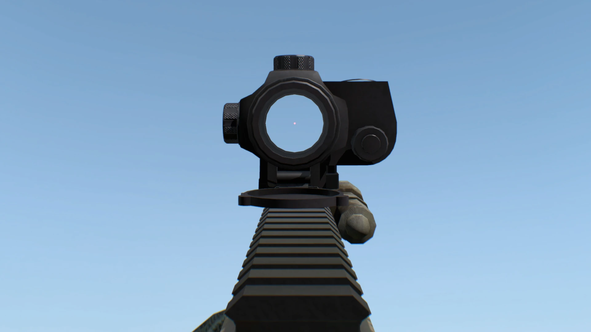 It lacks a laser pointer, but does have access to a flashlight that is fitted to the side rail on the CZ 805 BREN A2 (SD) sub-variant. It usually comes standard with just ironsights but the ZD-Dot reflex can be attached onto the suppressed model.