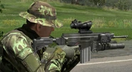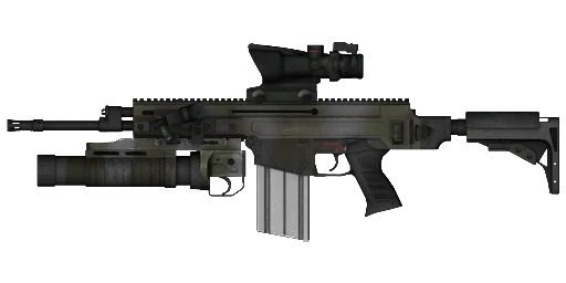 The CZ 805 B1 G1 is a heavily modified A1 assault rifle that has been converted into a battle rifle. Unlike its parent weapon, the B1 is chambered to fire 7.62×51 mm NATO ammunition instead of 5.56 mm NATO. Like the A1 G1 variant, it has an underbarrel grenade launcher that can load and fire 40 mm grenades.