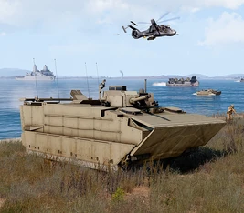 | « | The Marines have landed! Explore new warfare capabilities in Arma 3 with the Expeditionary Forces Creator DLC. Prepare your Marines for action on the Amphibious Warfare Ship, assault enemy shores with AAV-9 Mack IFVs and Combat Boats, bring supplies ashore with the LCC-1 Landing Craft, perform raids behind enemy lines with new Hunter reconnaissance vehicles, and take part in the invasion of Altis from a new perspective. Official DLC Description