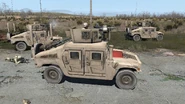 Unlike the Jeep, the HMMWV is completely defenceless and does not have a dedicated sub-variant with weapons of any kind mounted atop the vehicle's roof. As a result, the HMMWV relies more on its speed to get in and out of an AO. Staying for any longer than necessary in an area that has armed threats is ill-advised since the HMMWV, even with its high base armour, won't last long under fire from anti-vehicle launchers.