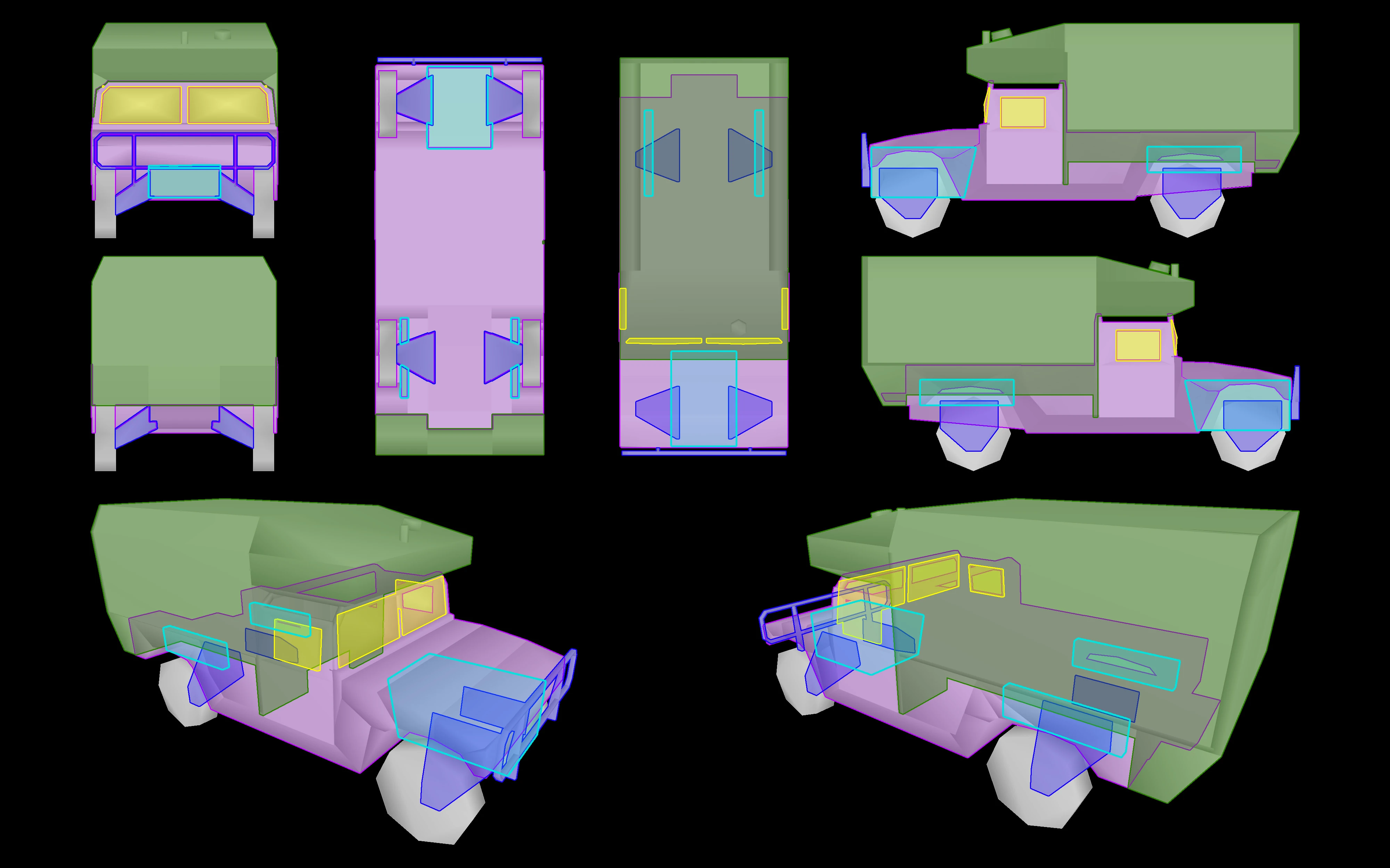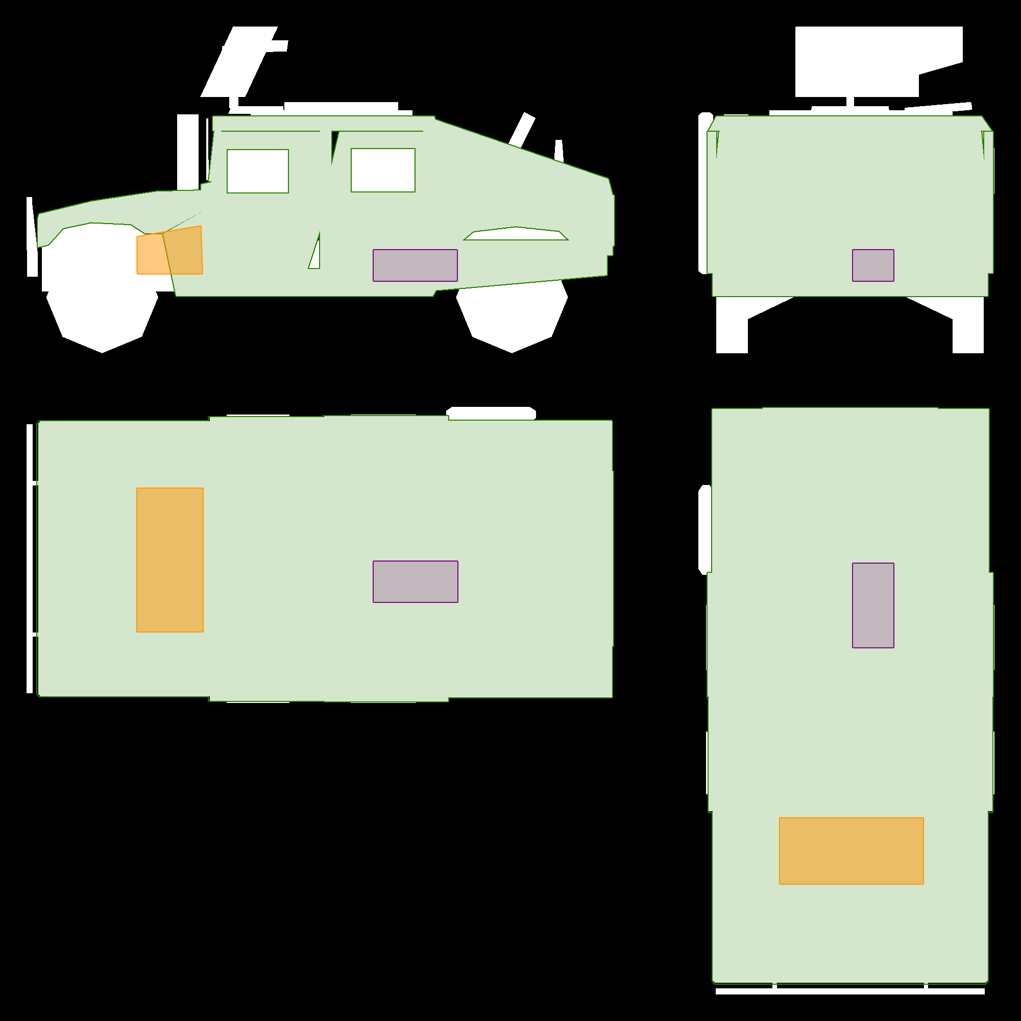 - Woodland: Three-colour woodland camouflage scheme. Used by U.S. Army HMMWVs only.