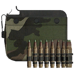 Standard 200-round linked belt stored inside an ammobox loaded with a mix of 5.56 mm NATO ball and tracer ammunition.[CfgMa 14] Rounds fired from this magazine specifically have a muzzle velocity of 915 m/s.[CfgMa 5]