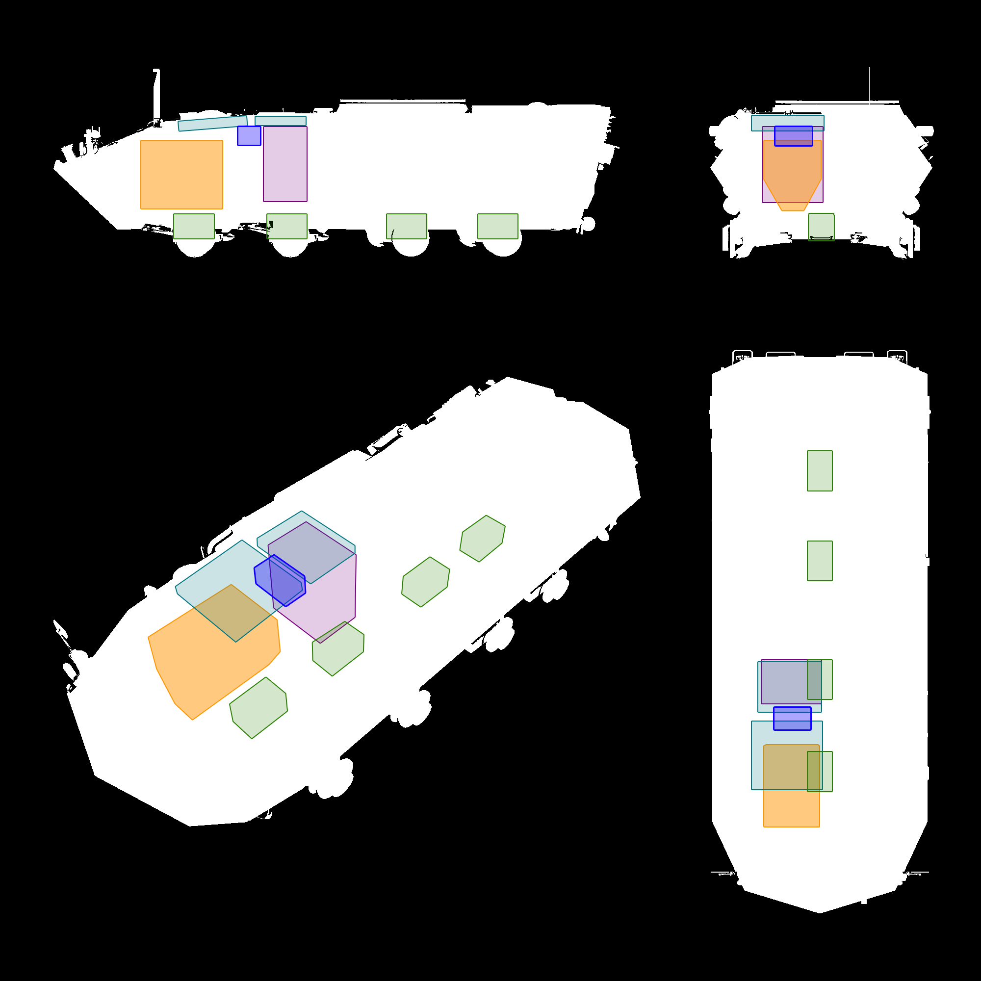 LEGEND Green = Body Orange = Engine Violet = Fuel tank Maroon = Turret (APC only)