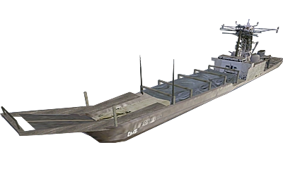The LST is able to carry up to fifty-one soldiers at a time; an impressive feat that is unmatched by any other troop carrier in Cold War Assault.[CfgVh 1] It also features a landing pad in the rear of the ship that helicopters can land or hover near to automatically rearm their weapon systems (up to 10,000,000 units of ammunition can be resupplied).[CfgVh 5]