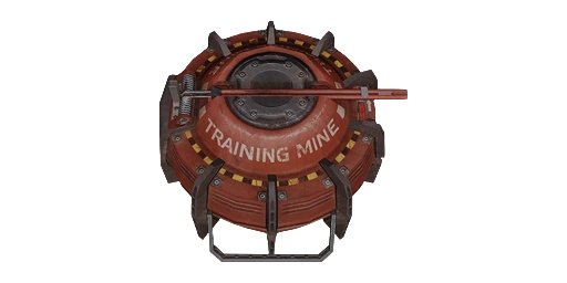 The Training Mine uses a pressure-sensitive trigger that will cause it to "detonate" upon being stepped on. Upon activation, it will raise a miniature "Boom!" flag, release a cloud puff of orange-coloured smoke and sparks, and produce a high-pitched sound somewhat like a rocket shooting off.