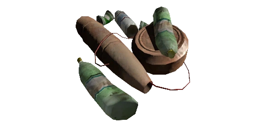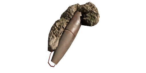 This IED is remotely-detonated and has a kill zone radius of 7 metres. Similar to its smaller counterpart, the only difference being that it appears as a cylindrical-shaped case covered by some rocks. It is still only marginally effective against light-medium armour vehicles and will not inflict any damage on modern MBTs.