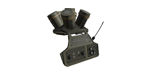 The anti-personnel mine dispenser is not an explosive device itself. Rather, on activation, it scatters 14 AP mines to cover an area in front of it. These small mines feature unfolding spikes that enable them to stick to most surfaces. This incredibly lethal weapon is is used for quick area denial and defense, but also leaves behind a dangerous field of ordinance, if the mines are not properly cleared afterwards. Its use is prohibited by international treaties.