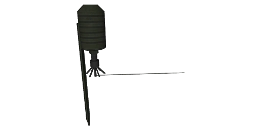A deceptively lethal trap that can almost always result in an instant death for the victim regardless of the type of vest they may be wearing. Because of its inconspicuous profile, these stake mines are notoriously difficult to see if placed in dense grasslands or any locale with thick weeds and other bunched-up flora. The wires themselves are even more difficult (if not outright impossible) to spot with the naked eye - especially in poor weather or low-light conditions.