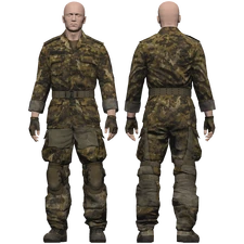 | Bandit Rags • Combat Fatigues (UNA) • Commoner Clothes (Jacket, Nomad, Villager) • Contractor Outfit • CTRG Combat Uniform • CTRG Stealth Uniform • Light Combat Fatigues • Pilot Coveralls • Tanker Coveralls | |