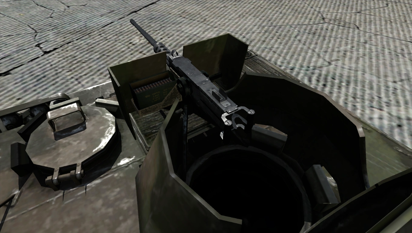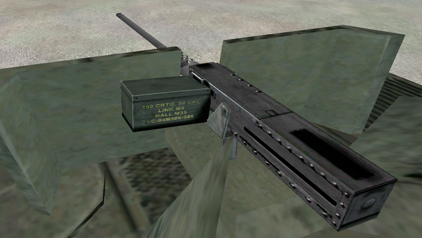 It can attain a fire rate of up to ~ 545 RPM[A2CfgW 1][Formula 21] with a muzzle velocity of 930 m/s.[A2CfgM 1] Accuracy-wise, the M2 has a dispersion of 0.001 rad.[A2CfgW 2] It takes at least 6 seconds to reload the M2 with a fresh belt box or to fully rearm from a supply truck/ammunition crate.[A2CfgW 3] Every third round in the belt will emit a visible red tracer.[A2CfgM 2]