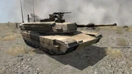 | « | The M1A1, famous for its role in the Gulf Wars, is the United States’ primary Main Battle Tank. The M1A1 features an M256 smoothbore cannon capable of firing an armor-piercing fin-stabilized discarding sabot (APFSDS) round with a depleted uranium penetrator. This one is upgraded with TUSK (Tank Urban Survival Kit) allowing for greater survivability in urban terrain. |