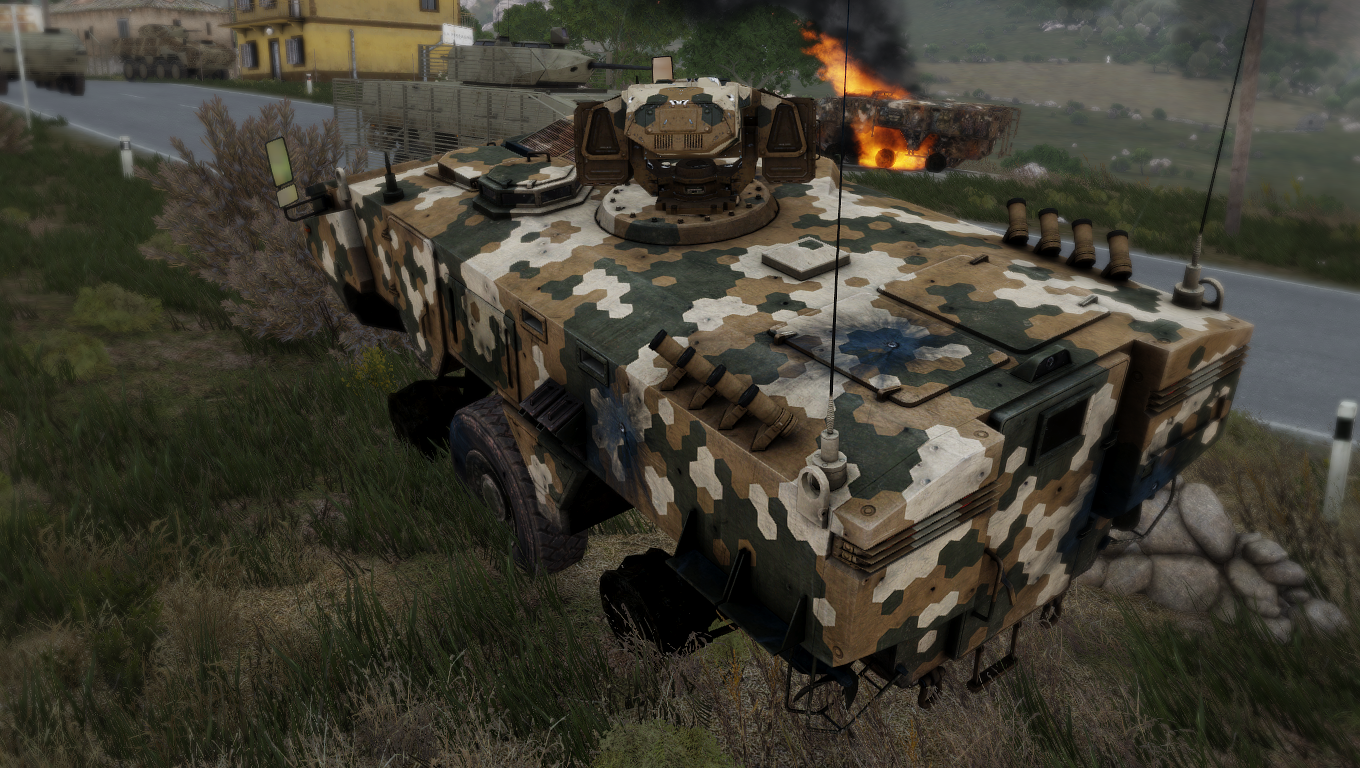 | Wheeled | Ifrit (HMG, GMG) • MSE-3 Marid • Qilin (Minigun, AT) • Quadbike • Tempest (Ammo, Device, Fuel, Medical, Repair, Transport Covered) • UGV Saif (RCWS) • Zamak (Ammo, Fuel, Medical, Repair, Transport Covered) |