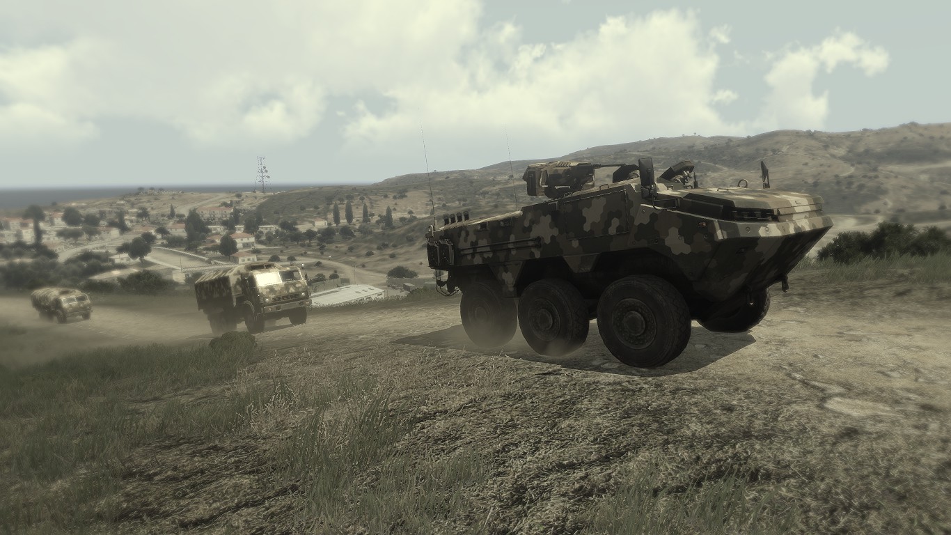 Despite being ~ 22% lighter than NATO's Marshall IFV (23 tonnes), the MSE-3's performance on land leaves much to be desired due to its mediocre engine and torque curve.[CfgVh 11] Although its turn rate[CfgVh 12] and off-road handling[CfgVh 13] is mostly identical to the Marshall, the MSE-3 has a slower acceleration rate and will take ~ 3 seconds longer to attain its normal cruising speed of 60 km/h (up to ~ 14-15 seconds compared to the Marshall, which needs only ~ 11-12 seconds to attain the same speed). This difference in acceleration also applies when turbo is active; the MSE-3 will take over ~ 33 seconds to hit the 100 km/h threshold whereas Marshall IFVs need no more than ~ 29 seconds to achieve the same speed.