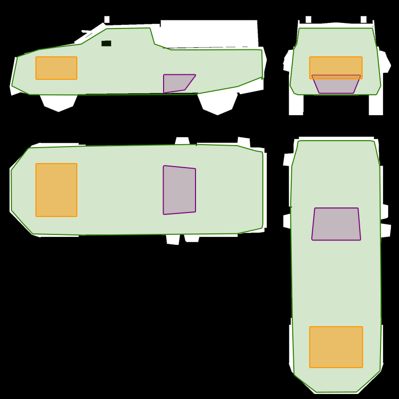 Its improvised armour package doubles the Offroad UP's gross weight. This results in a sharp reduction to the Offroad UP's turn rate and also cuts its top speed by nearly 27%, reducing it from 200 km/h to a hard maximum of only 152 km/h.