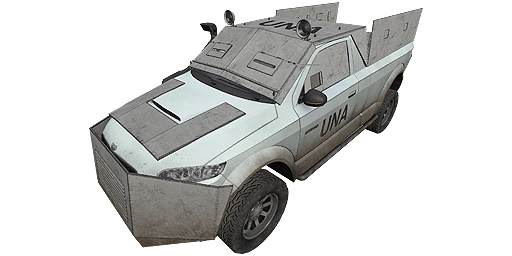- UNA:* Flat white colour scheme with black letters ("UNA") painted over both doors, the roof of the cab, and tailgate/rear bumper. Exclusive to the United Assistance peacekeeping contingent.