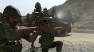 - It is technically a weapon that belongs to the Takistani Army but none of the faction's units wield it by default. Without the usage of scripting commands, it can only be found in Takistani Army weapon crates and specific missions in the expansion pack's main campaign (specifically at the start of the Pathfinder mission).