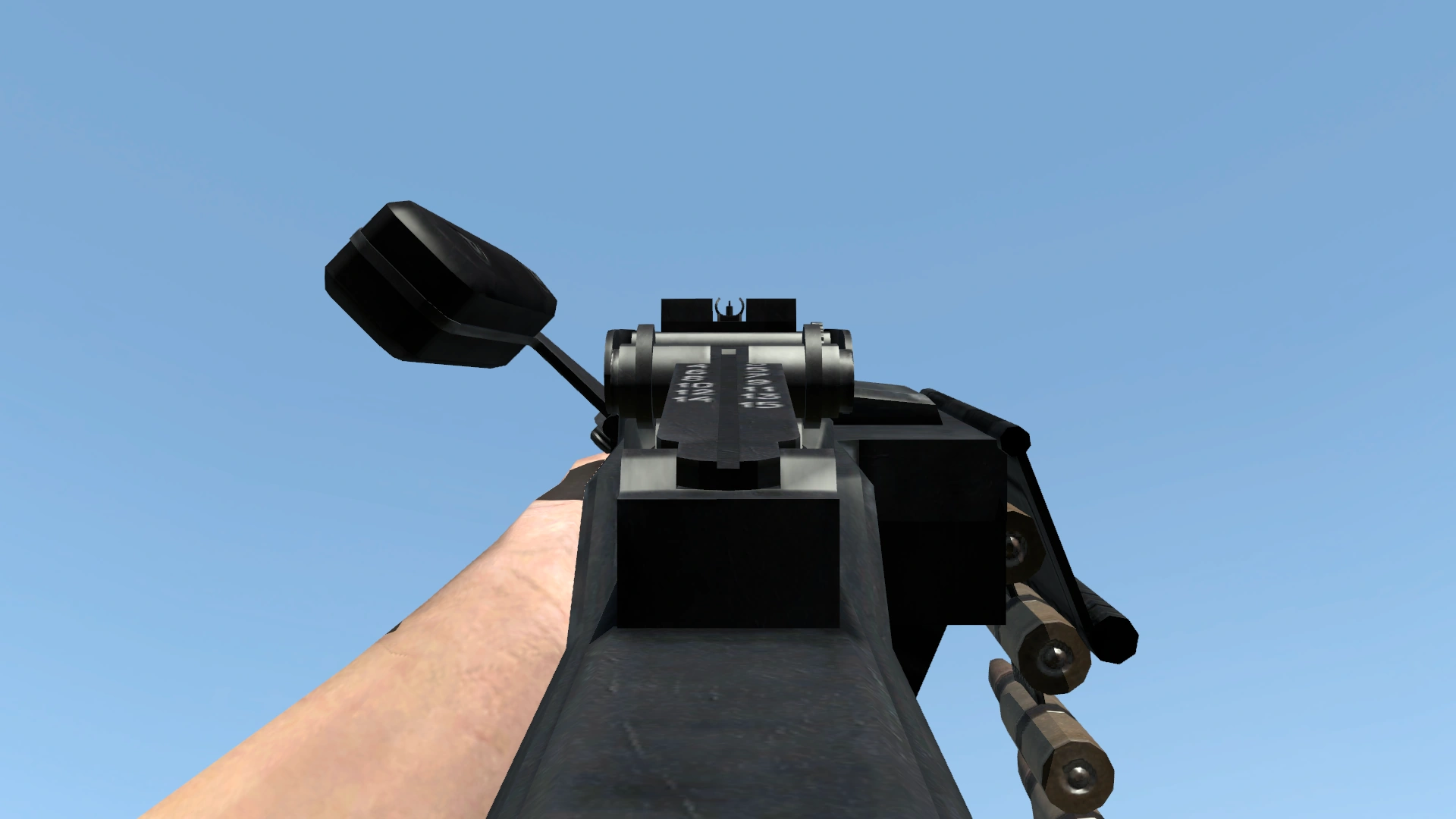 It still feeds from 100-round belt boxes like its predecessor in Cold War Assault[A1CfgW 5] but its muzzle velocity has been reduced to 850 m/s[A1CfgM 2], and it is slightly less accurate since Armed Assault's PKM has a dispersion of 0.0008 rad.[A1CfgW 1]