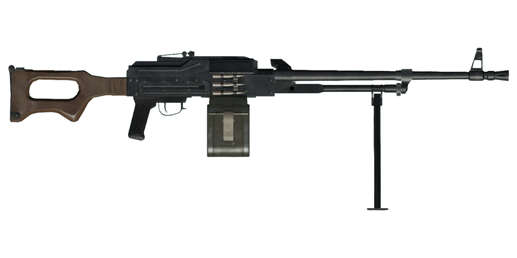 The PK is the standard-issue GPMG of the Soviet Armed Forces. A moderately powerful machine gun, the PK provides every Soviet squad with the ability to suppress enemy infantry within whichever direction it's pointed at. It retains a good base rate of fire, above average accuracy, and a large ammunition capacity which makes the PK a decent competitor to its American counterpart.