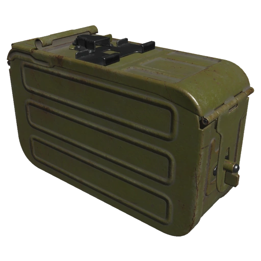 100-round metal box with a linked belt loaded with 7.62 mmR ball ammunition.[CWACfgW 11]