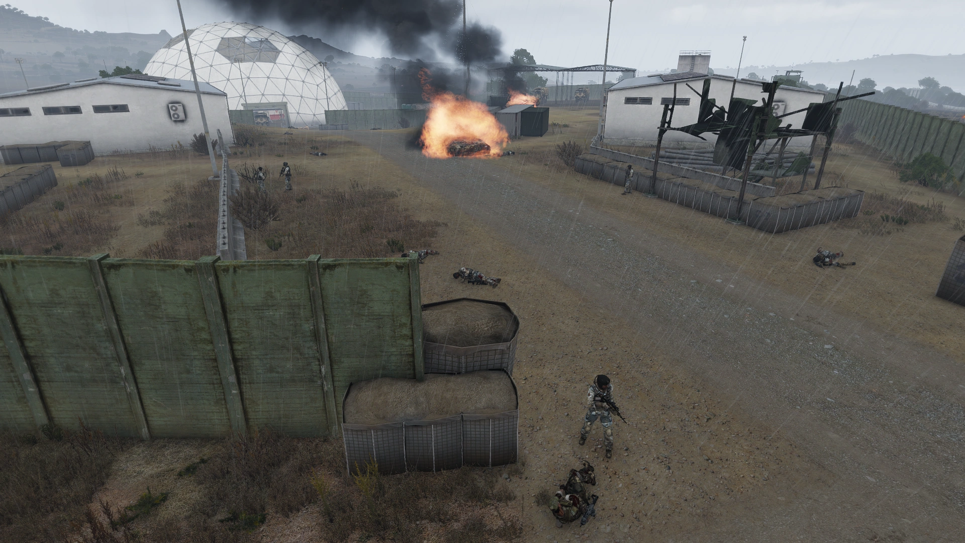 - The CSAT Guards infantry at the base are strangely equipped with non-CSAT gear that ranges from NATO Heli Crew Helmets to black Carrier Lites. To date, it has never been explained as to why these specific units utilise NATO equipment.