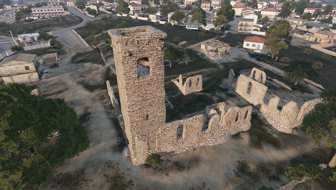 Although Pyrgos suffered relatively minor destruction compared to other settlements at the height of the NATO invasion of Altis, much of Pyrgos' northern and eastern districts are still heavily damaged from the fighting.[7][8] Unexploded Ordnance (UXO) leftover from cluster munitions dropped during the fighting is also present, further complicating the rebuilding process.[9]