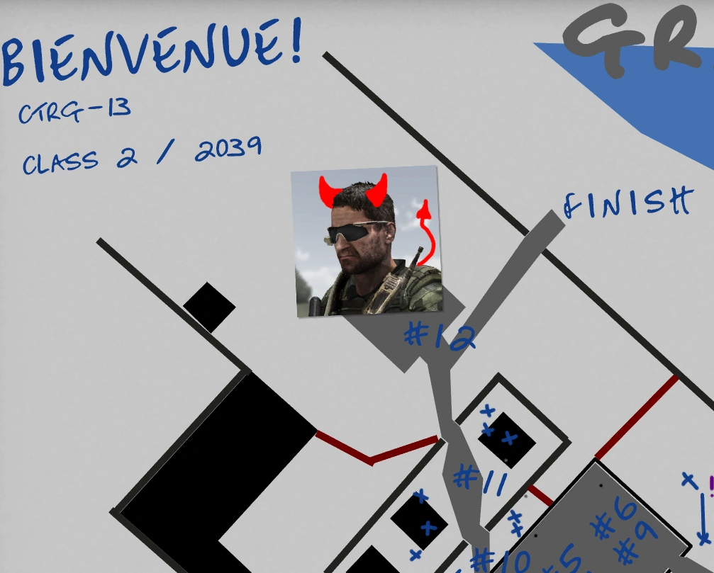 In a tongue-in-cheek reference to his ethically questionable actions throughout the campaigns, his photograph on the course map displayed on the whiteboard amusingly depicts him with a devil's horns and tail drawn over it.