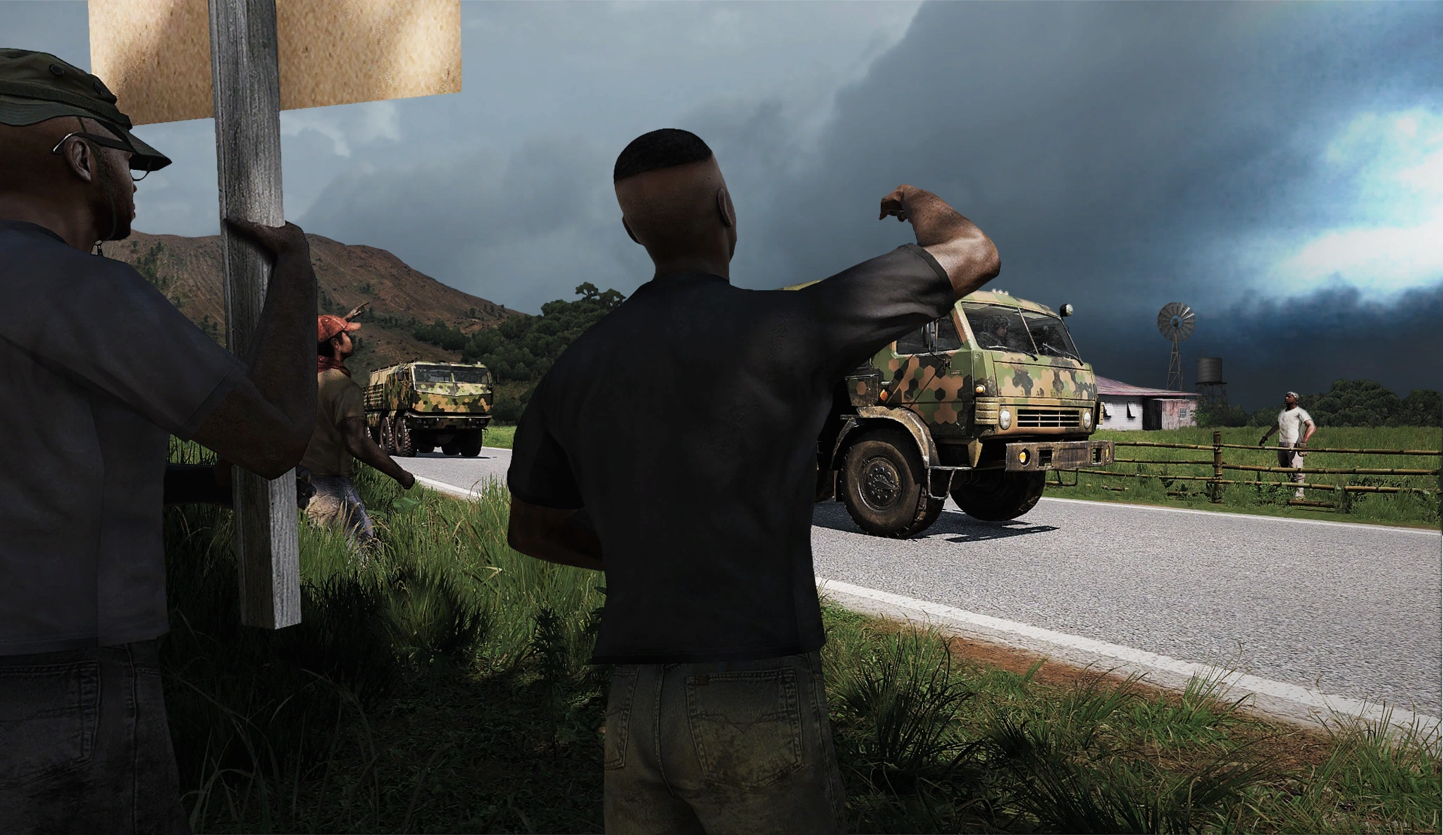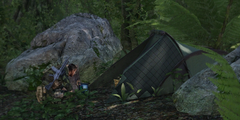 Meanwhile, the search for Eastwind continued deeper into the eastern regions of the island. They were still too heavily patrolled by CSAT troops however, putting a temporary halt to their mission. Instead, Miller ordered James' team to return back west. Stavrou had arranged for Kerry to link up with an AAF officer who was offering to defect to the FIA.[11] Miller dispatched James' men to escort the officer back to the guerilla camp, though the officer insisted to Miller over the radio that he had no need for such concerns.