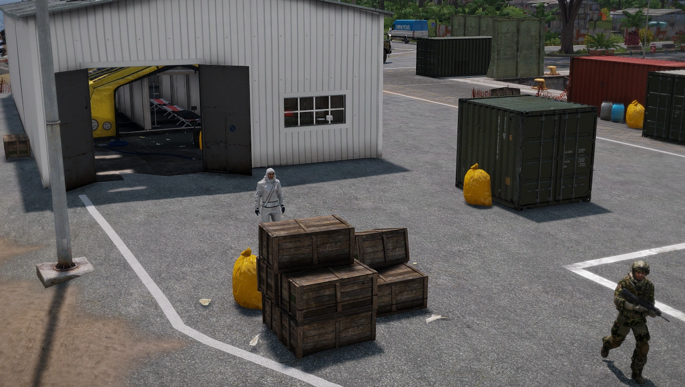 Fortunately for CTRG, communications between Warlock and Viper Team were intercepted and it was revealed that negotiations were being held at the Blue Pearl Industrial Port on the main Tanoa island, with Eastwind also present somewhere on the docks. As darkness fell, time was running short as Miller and both Raider teams rushed to get into position at the port.[11] Furthermore, it was reported that Eastwind had been deliberately armed by Warlock as well.