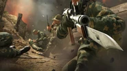 ↑ARMA: Cold War Assault 2011 [Video Game], Bohemia Interactive a.s., Resistance, Fire Fight, "A desperate action. But it may be the last - perhaps now we can finally end this bloody war! Gastovski's boys couldn't manage it. They didn't destroy the airport, they just stirred up the Soviets, who'll now concentrate all their forces here. Out of all the Americans, only Gastovski is still alive, but he's injured and had to hide in the house. It is up to me now..."