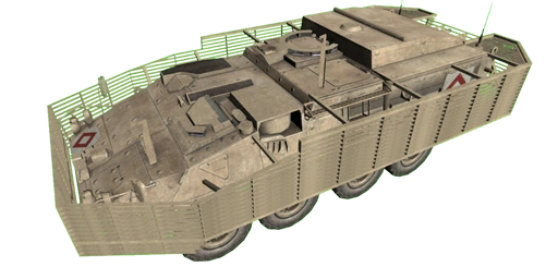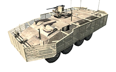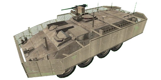 The Stryker is considered to be a medium threat[5] to AI-controlled infantry units, ground vehicles, and aircraft (0.5/0.5/0.5).[A1CfgV 54]