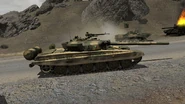 Desert: Standard two-tone desert tan/olive green camouflage scheme. Only used by the Takistani Army's T-72s.