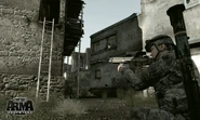 ↑ARMA: Cold War Assault 2011 [Video Game], Bohemia Interactive a.s., Resistance, Fire Fight, "A desperate action. But it may be the last - perhaps now we can finally end this bloody war! Gastovski's boys couldn't manage it. They didn't destroy the airport, they just stirred up the Soviets, who'll now concentrate all their forces here. Out of all the Americans, only Gastovski is still alive, but he's injured and had to hide in the house. It is up to me now..."