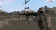 In response to the loss of communications, the commander of the U.S. Army garrison on nearby Malden, Colonel Blake, dispatches helicopter scouts to ascertain the identity of the camp's attackers. When the helicopters fail to return[38], he sends several squads to assault Everon itself.[39]
