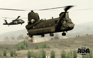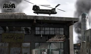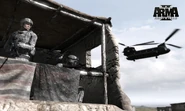↑ 20.020.120.2Take On Helicopters 2011 [Video Game], Bohemia Interactive a.s., Memory: Operation Longbow, "Operation Longbow is in effect. The U.S. Army has deployed to the region on training exercises; our goal is to get the men and vehicles properly acclimatised to the environment and familiar with the terrain. To the north, an aggressive state is sabre-rattling: keen to claim the rich vein of oil deposits on this side of the border. Reports indicate that diplomatic routes are leading to dead ends, and we're getting close to a flashpoint. By now, it's no secret that we're conducting border patrols and making contact with the local population, with the full support of the fearful government here. Today, we've got some top brass heading in to survey the situation. Operating out of CSL Archer, you're tasked to transport your commanding officer and a general above friendly territory."