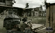 While fulfilling a contract to escort a group of UN inspectors attempting to reach the site of a supposed Takistani WMD programme, members from the ION Services private military company are stopped at a U.S. Army checkpoint.[100] Though they are sorely tempted to simply drive through the checkpoint[104], the mercenaries hold out until the leader of their detail, Mark Reynolds, manages to secure clearance from the military.[13][105]