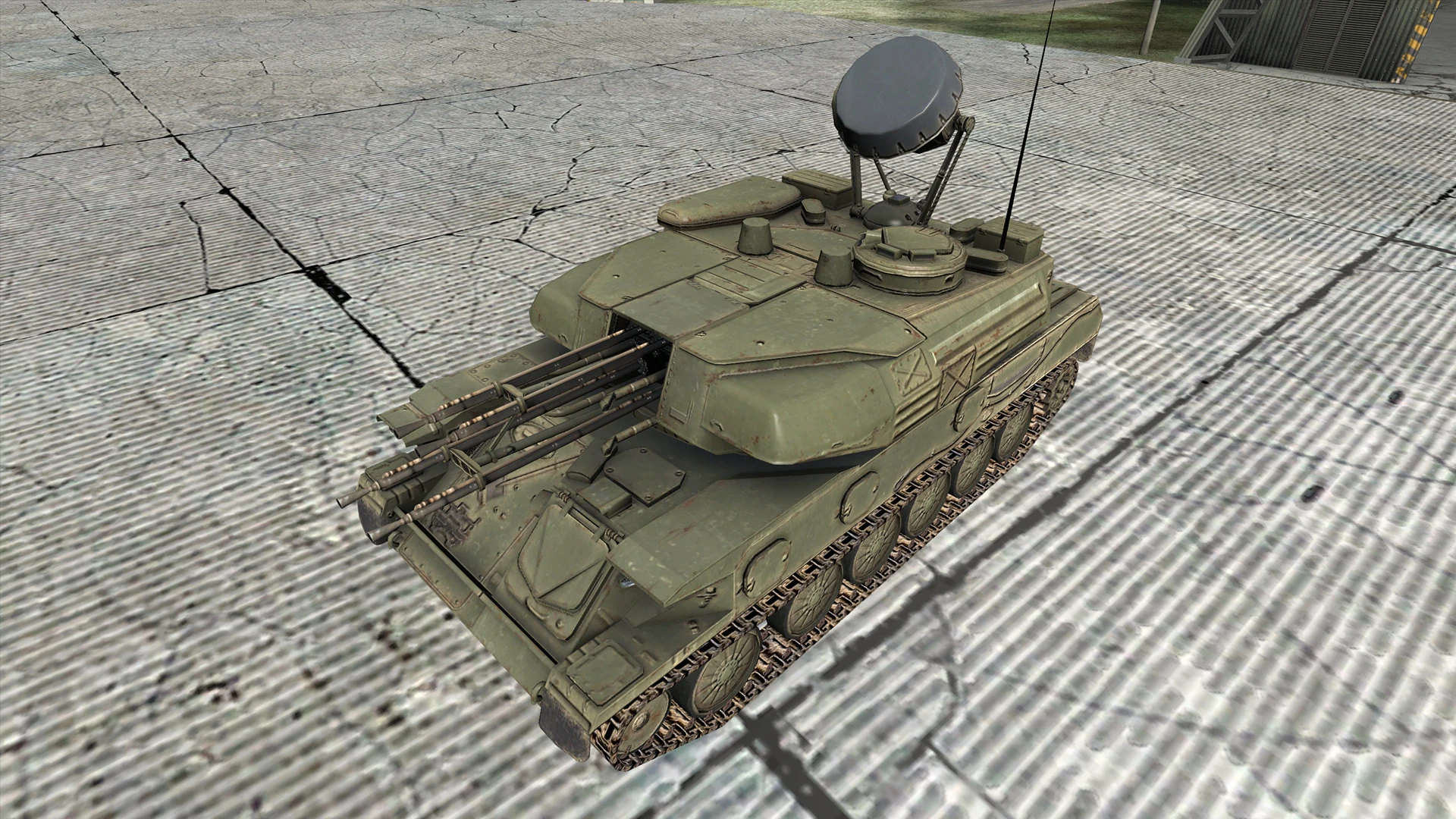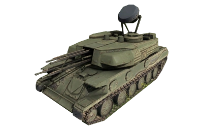 Insurgent: Olive green paint scheme with spraypainted stroke patterns. Used by ChDKZ-operated ZSU-23-4s.