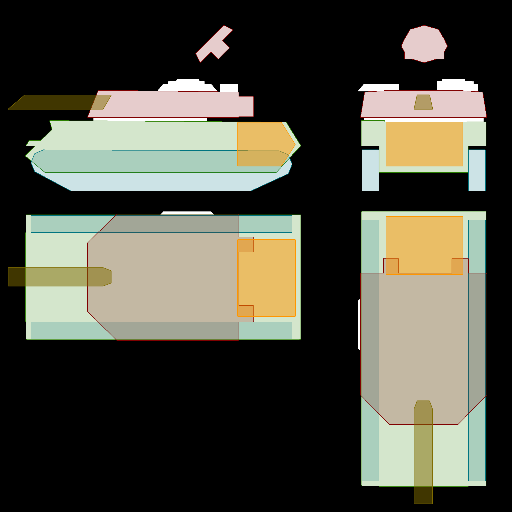 LEGEND Green = Hull Orange = Engine Light blue = Tracks Maroon = Turret Gold = AA cannons[note 5]